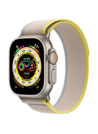 Meet the most rugged and capable Apple Watch ever. With a robust titanium case, precision dual-frequency GPS, up to 36 hours of battery life the freedom of cellular and three specialized bands made for athletes and adventurers of all kinds. The biggest and brightest Apple Watch display ever. Direct sunlight is no obstacle for an Always‑On Retina display that’s an eye-opening 2000 nits at its peak and twice as bright as any other Apple Watch. And the bigger display provides more room for workout metrics and detail‑packed watch faces. Wayfinder watch face with Night Mode. Specifically for Apple Watch Ultra, the Wayfinder face features a time dial that can be switched to a live compass and has room for eight complications. In low light situations, you can rotate the Digital Crown to activate Night Mode and see the watch face turn a vivid red. Looks tough. Because it is. To build the ultimate sports watch, we crafted every element with painstaking attention to detail for unparalleled performance. Titanium strikes the perfect balance between weight, ruggedness, and corrosion resistance. The new case design rises up to surround the flat sapphire crystal and protect it from edge impacts. The Digital Crown is larger and the side button is raised from the case, making them easier to use while you’re wearing gloves. Ready for Action. The new Action button gives you quick, physical control over a variety of functions. It’s customizable and can do things like control a workout, mark a Compass Waypoint, or begin a dive. Just like you, it’s full of potential. Everything in its place. An essential and versatile tool that fits on your wrist, Apple Watch Ultra packs incredible capability into a surprisingly small space. Battery life for days. When you’re on the second day of a backpacking trip, the final leg of a triathlon, or diving along a coral reef, the last thing you want to think about is running out of battery. With longer battery life than ever, you can take on almost anything and have energy to spare. Hike, run, dive. There’s a band for that. Making the ultimate sports watch for athletes of all kinds required a unique approach. That’s why specialized bands for outdoor adventures, endurance training, and water sports are as meticulously crafted as the watch itself. Whether it’s your first run in a while, a 10K, or an ultramarathon, it takes a special kind of person to seek out challenges that test you physically. Apple Watch Ultra is the training partner to help you push your limits. Find strength in numbers. Making progress as an athlete requires accurate data and insights. Updates to the Workout app like new metrics and views give you all the information you need to be and beat your best. The larger display lets you see up to six metrics at once. GPS that’s truly trailblazing. GPS performance is critical for athletes who want the most precise metrics, whether they’re training in urban streets or out in the wild. Apple Watch Ultra features a new precision dual-frequency GPS system that provides amazing accuracy in the most difficult locations. Two frequencies. One precise solution. Apple Watch Ultra integrates both L1 and L5 GPS into a new antenna design for greater range with incredible power efficiency. It combines data from these two frequencies to provide amazingly accurate distance, pace, and route calculations. Designed to take on extreme environments, elevations, and temperatures, Apple Watch Ultra is an essential exploration tool that can take you everywhere. And help get you home. The compass reimagined. An accurate compass is as crucial for navigating the wild as a solid pair of boots. The redesigned Compass app delivers all‑new views and functionality that take wrist‑driven orienteering to new heights. Action button. Make your mark. Find your way. A single press of the Action button can quickly drop a Compass Waypoint at your location or immediately start Backtrack, so you can focus on the journey ahead or behind you.