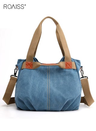 Women's One-Shoulder Crossbody Women's Bag Large Capacity Fashionable Handbag Women's Simple and Versatile Canvas Bag Women's Bag Zipper Multi-pocket Daily Work Commuting Bag Tote Bag Blue