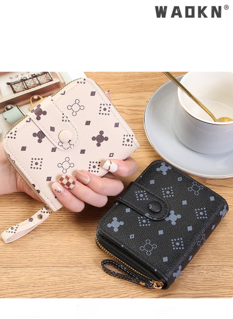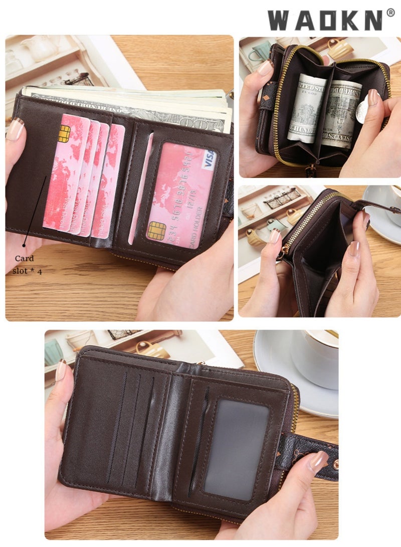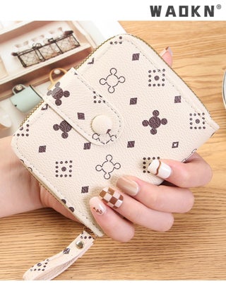 Women's Versatile Short Zipper Wallet Highlighting Unique Temperament Business Card Holder, Compact Hand Fashion Element Coin Purse with Distinctive Pattern Design Leading the Trend,Leather Purse Women's Small Purse Short Format Purse Cute Flower with Hand Strap Zip Purse Slim Card Holder Coin Compartment Wallet Girls,Multi-functional Short Zipper Buckle Card Holder Coin Purse for College Students and Teenagers