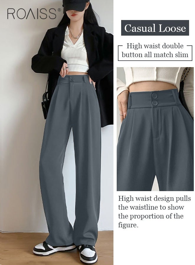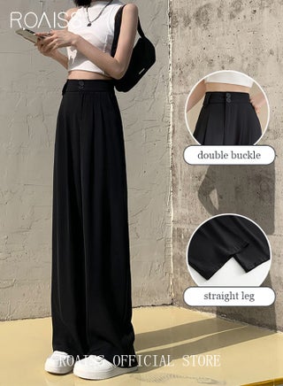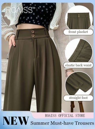 Introducing our women's high-waisted, drapey, slimming straight-leg casual suit pants with a flattering wide-leg design.