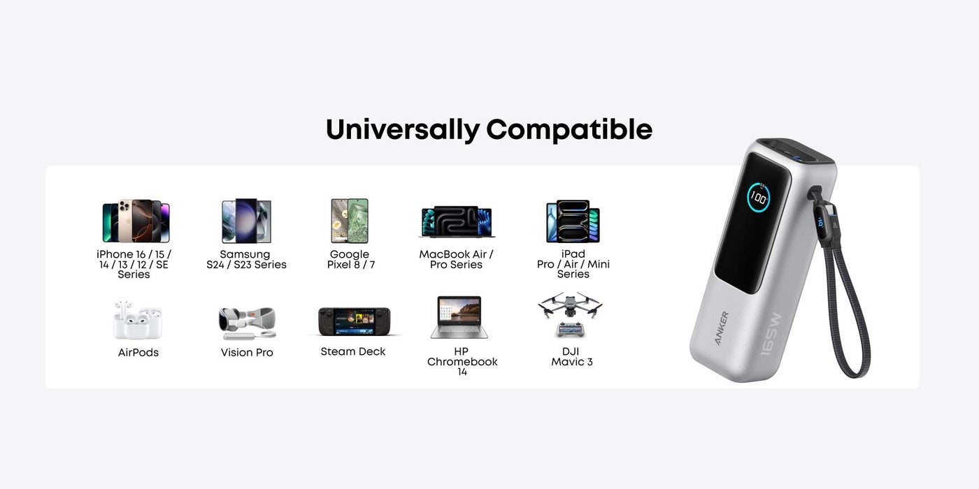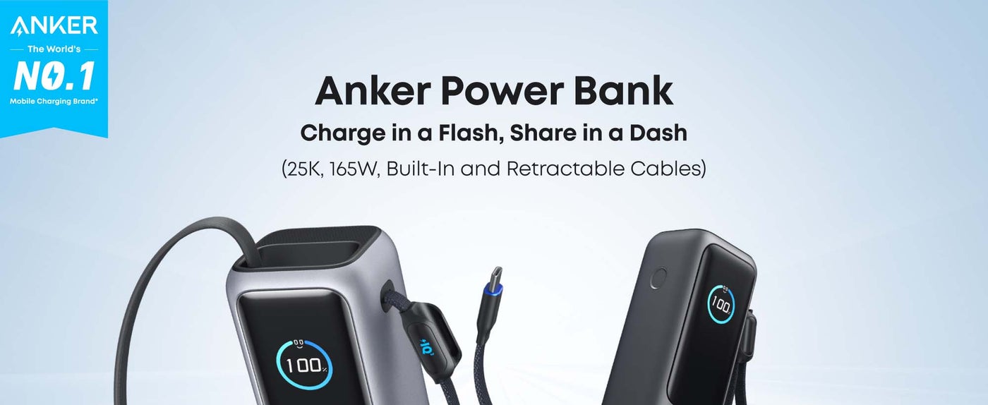 What You Get: Anker Power Bank (25K, 165W, Built-In and Retractable Cables), welcome guide, 12-month warranty, and our friendly customer service
