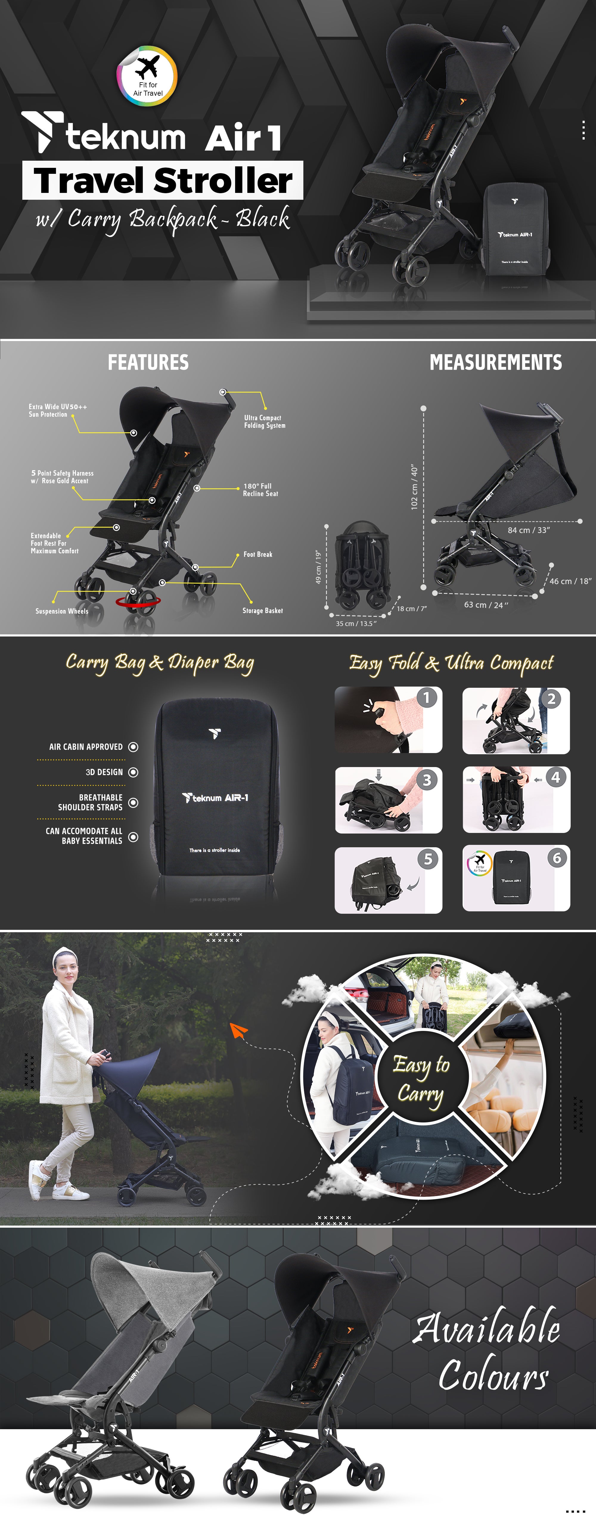 | Set Includes | 1*Teknum AIR-1 Travel Stroller w/ Carry Backpack - Black |